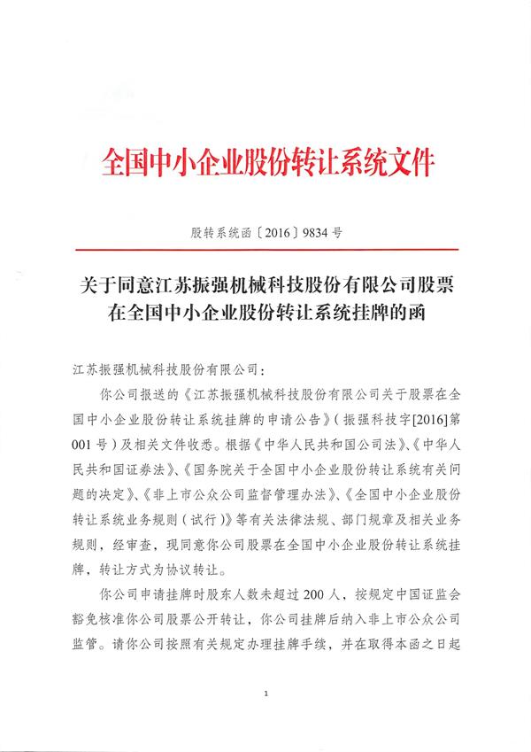 江蘇振強機械科技股份有限公司 >> 公司簡介 >> 資質證書 >> 允許振強股份掛牌