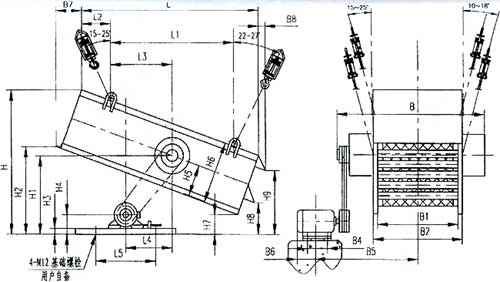圖1 SZZ800×1600及SZZ2800×1600自定中心振動篩安裝尺寸