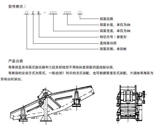 ZD系列等厚振動(dòng)篩(直線香蕉篩、弧形篩)的篩面是由箱式振動(dòng)器以及多段不同傾角面組成的近弧形面組成。