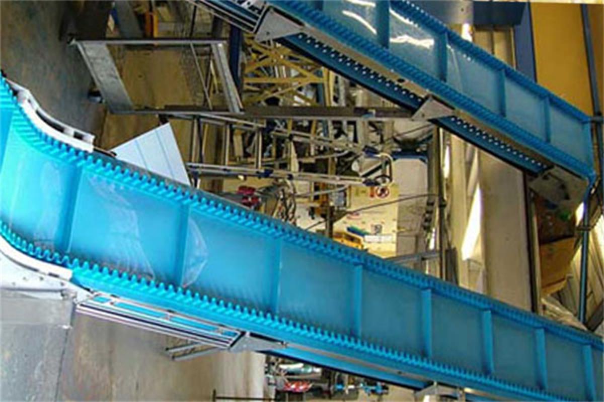大傾角皮帶機放入擋邊帶式輸送機為一般用途的散狀物料連續(xù)輸送設備,大傾角皮帶機采用的是具有波狀擋邊和橫隔板的輸送帶。因此,適用于大傾角輸送。